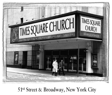 After 30 years of crusade ministry, and his one year prayer sabbatical–he was led of the Spirit up to New York City again for a street rally. While up there, God told him to move back to the city and plant a church. He planted Times Square Church in 1987, first renting several theaters, and then buying the Mark Hellinger Theater for $15 million!! He had a newsletter mailing list, which still had a massive following, including a following in New York, because when he announced by newsletter and The New York Times that he was planting a church, hundreds of people instantly attended–from all walks of life. Reminiscent of his early days at Teen Challenge, but more similar to William Booth and the early Salvation Army–he started an urban ministry called The Upper Room, which was a soup kitchen and discipleship center for street people: the homeless, the addicts, the prostitutes, etc. Job leads for the unemployed. Out of this ministry, he found that the Holy Spirit was leading him to appoint ministry leaders. The problem was, though, that they were from all sorts of denominational backgrounds. So he gave up his Assemblies of God ministerial credentials, and had the freedom to appoint ministry leaders, at the guidance of the Holy Spirit, without denominational interference. He made Times Square Church into a non-denominational or “inter-denominational” Pentecostal church.