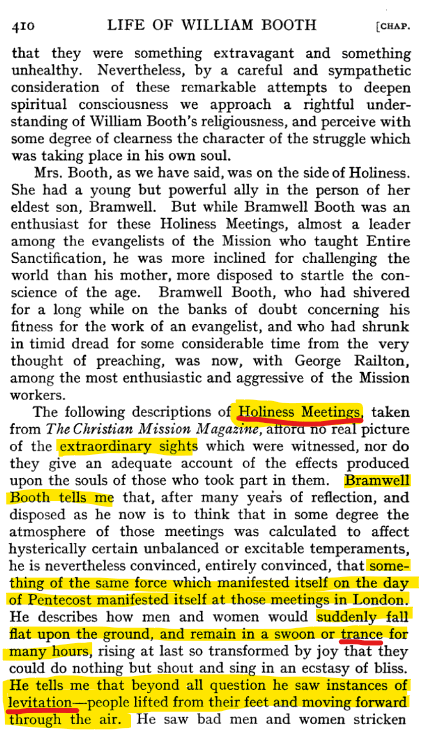 The Holy Ghost would take hold of men on the back seat and lift them bodily over the congregation and drop them at the altar. I’ve said to Pentecostals, “If you saw that, you’d run for the door, you’d say its spiritism or something.” –Leonard Ravenhill on William Booth’s prayer meetings (video below: 2:24)
