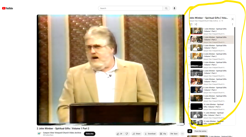 John Wimber, Spiritual Gifts Seminar. 1985. tape series.