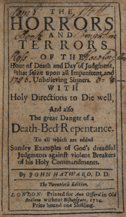 John Hayward’s The Horrors and Terrors of the Hour of Death (1690) – click for text.