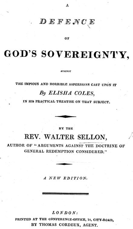 Walter Sellon, A Defence of God’s Sovereignty (Arminian).