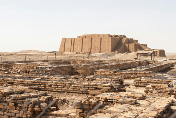 181. This wall then which I have mentioned is as it were a cuirass for the town, and another wall runs round within it, not much weaker for defence than the first but enclosing a smaller space. And in each division of the city was a building in the midst, in the one the king’s palace of great extent and strongly fortified round, and in the other the temple of Zeus Belos with bronze gates, and this exists still up to my time and measures two furlongs each way, being of a square shape: and in the midst of the temple is built a solid tower measuring a furlong both in length and in breadth, and on this tower another tower has been erected, and another again upon this, and so on up to the number of eight towers. An ascent to these has been built running outside round about all the towers; and when one reaches about the middle of the ascent one finds a stopping-place and seats to rest upon, on which those who ascend sit down and rest: and on the top of the last tower there is a large cell, and in the cell a large couch is laid, well covered, and by it is placed a golden table: and there is no image there set up nor does any human being spend the night there except only one woman of the natives of the place, whomsoever the god shall choose from all the woman, as say the Chaldeans who are the priests of this god.