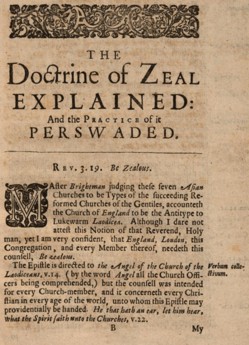 Simeon Ashe, The Doctrine of Zeal Explained (1654).