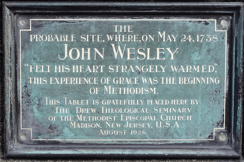 In the evening I went very unwillingly to a society in Aldersgate Street, where one was reading Luther’s preface to the Epistle to the Romans. About a quarter before nine, while he was describing the change which God works in the heart through faith in Christ, I felt my heart strangely warmed. I felt I did trust in Christ, Christ alone, for salvation; and an assurance was given me that He had taken away my sins, even mine, and saved me from the law of sin and death.