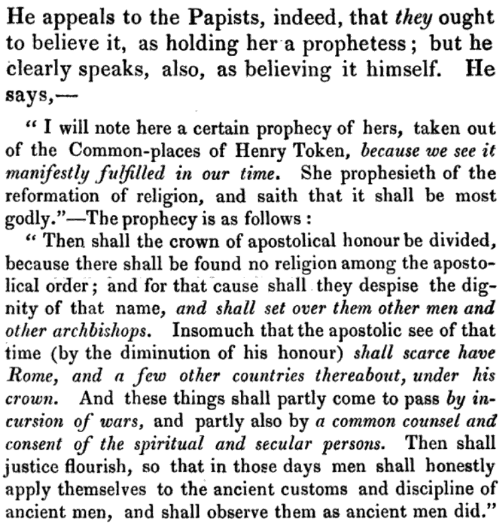 According to the long version of Foxe’s Book of Martyrs, she prophesied about the Protestant Reformation hundreds of years before it happened. –J.B.