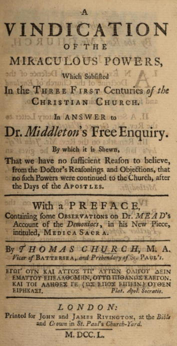 Thomas Church, A Vindication of the Miraculous Powers (1750), pp. 198-208.