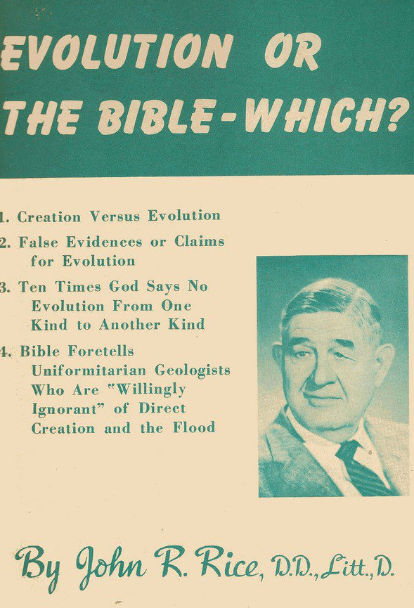 I also think the evolution issue confuses people because of its complexity. We need to have more sermons on creation with a strong Bible Baptist preaching against evolution sort of style; that is simple, to the point, and won’t meander about Neander. Dr. John R. Rice’s booklet Evolution or the Bible–Which? was a great example of nailing all the main points without getting into Ph.D. level complexity. I think that the common churchgoer can’t shake off evolution if the issue remains befuddled with complexity, so complex that evangelical pastors don’t even know where to start–even if they work up the guts to confront the problem, as teachings about evolution continue to eat away people’s faith in the Bible every year. Whether they’re aware of it or not.