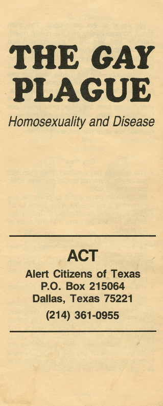 ACT, The Gay Plague: Homosexuality and Disease (Alert Citizens of Texas, 1983).