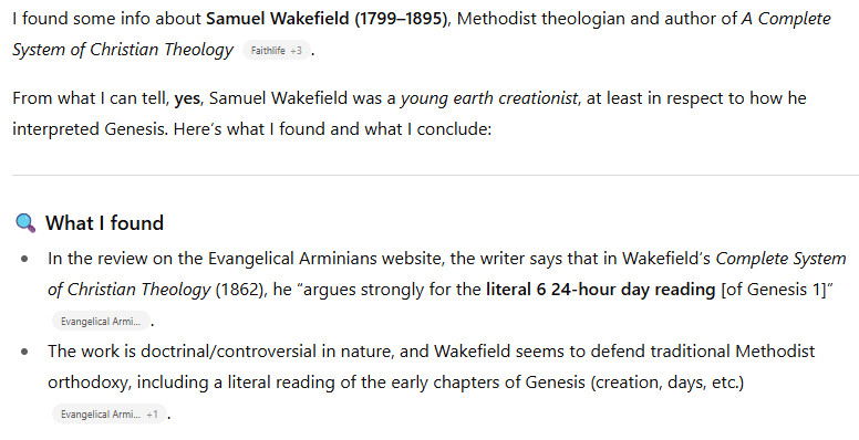 WESLEYAN THEOLOGIANS THAT REJECTED YOUNG EARTH CREATION; AND AS A RESULT, CANNOT BE TAKEN VERY SERIOUSLY AS THEOLOGIANS, BECAUSE THEY DID NOT REGARD THE BIBLE TO BE THE ABSOLUTE AND SUPREME AUTHORITY ON MATTERS OF CHRISTIAN DOCTRINE. THEY ALLOWED UNPROVEN SCIENCE THEORIES LIKE EVOLUTION TO BE ELEVATED ABOVE THE BIBLE…