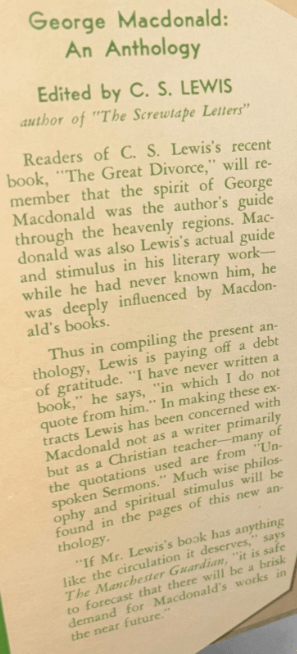 C. S. Lewis, ed. George Macdonald: An Anthology (Macmillan, 1947).