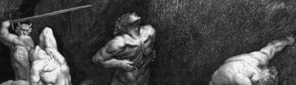 The first one Dante sees is Mahomet, disemboweled, who tells him that his son-in-law, Ali, is in the same condition and that all the others are horribly mangled in some manner. As they circle the chasm, the wounds heal, but when they complete the circle, the wounds are renewed by a devil with a sword.