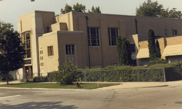 It was a converted garage: this was the Southside Gospel Tabernacle: his first building before his church grew in size (1928-1940); and they moved into the bigger auditorium nearby. I had a relative in Chicago, who when I was a boy, had those ice cube style windows in his bathroom.